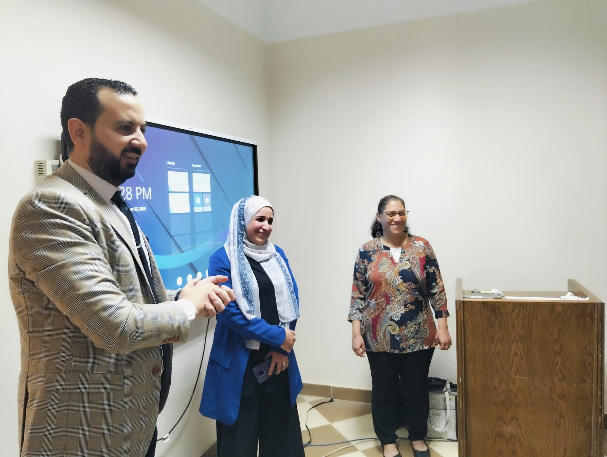 استهدفت الورشة تعريف الحضور بآليات تشغيل واستخدام الشاشات الذكية التفاعلية والمتطورة مع استعراض لأبرز مميزاتها في دعم العملية التعليمية مثل الكتابة الرقمية، تسجيل المحاضرات، وإتاحة التفاعل المباشر بين المحاضر والطلاب. كما تضمنت الورشة عروضًا عملية توضح كيفية توظيف هذه الشاشات في الشرح، العروض التقديمية، وحل المشكلات التعليمية بأسلوب مبتكر.