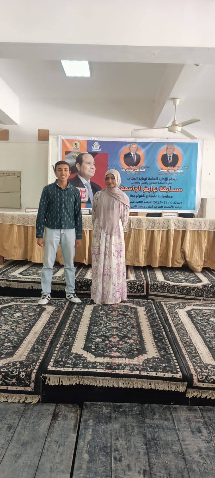لحصولهما على المركز الثاني على مستوى الجامعة في مسابقة نوابغ الجامعة (معلومات علمية وتكنولوجية) للعام الجامعي 2025 – 2026.