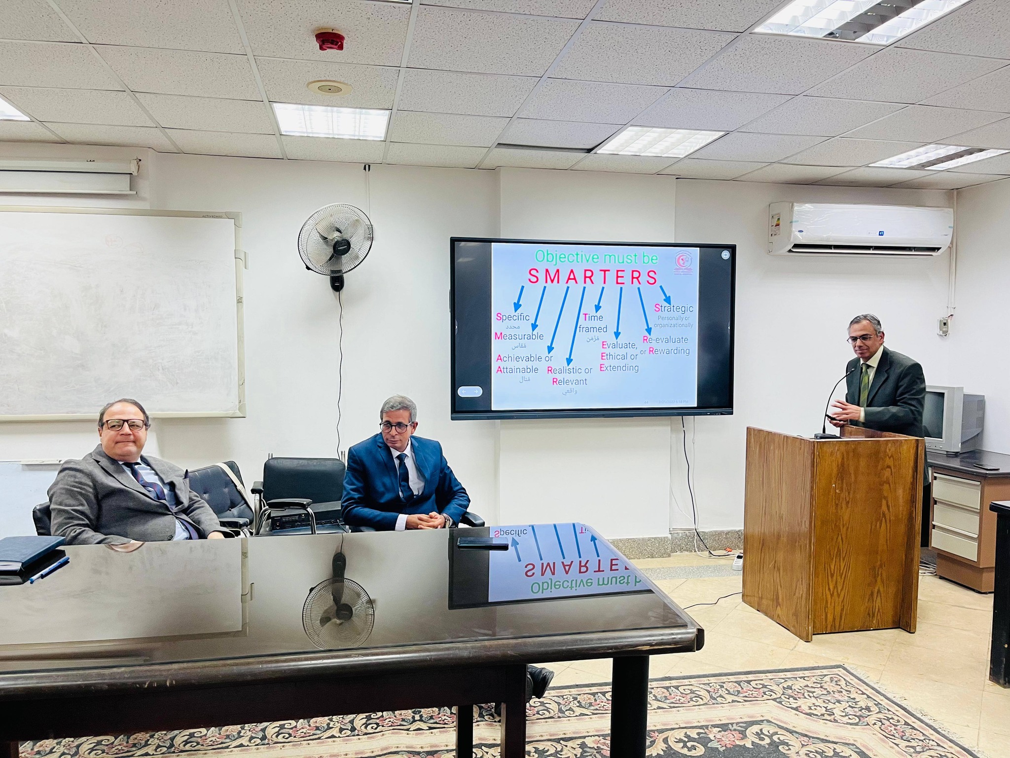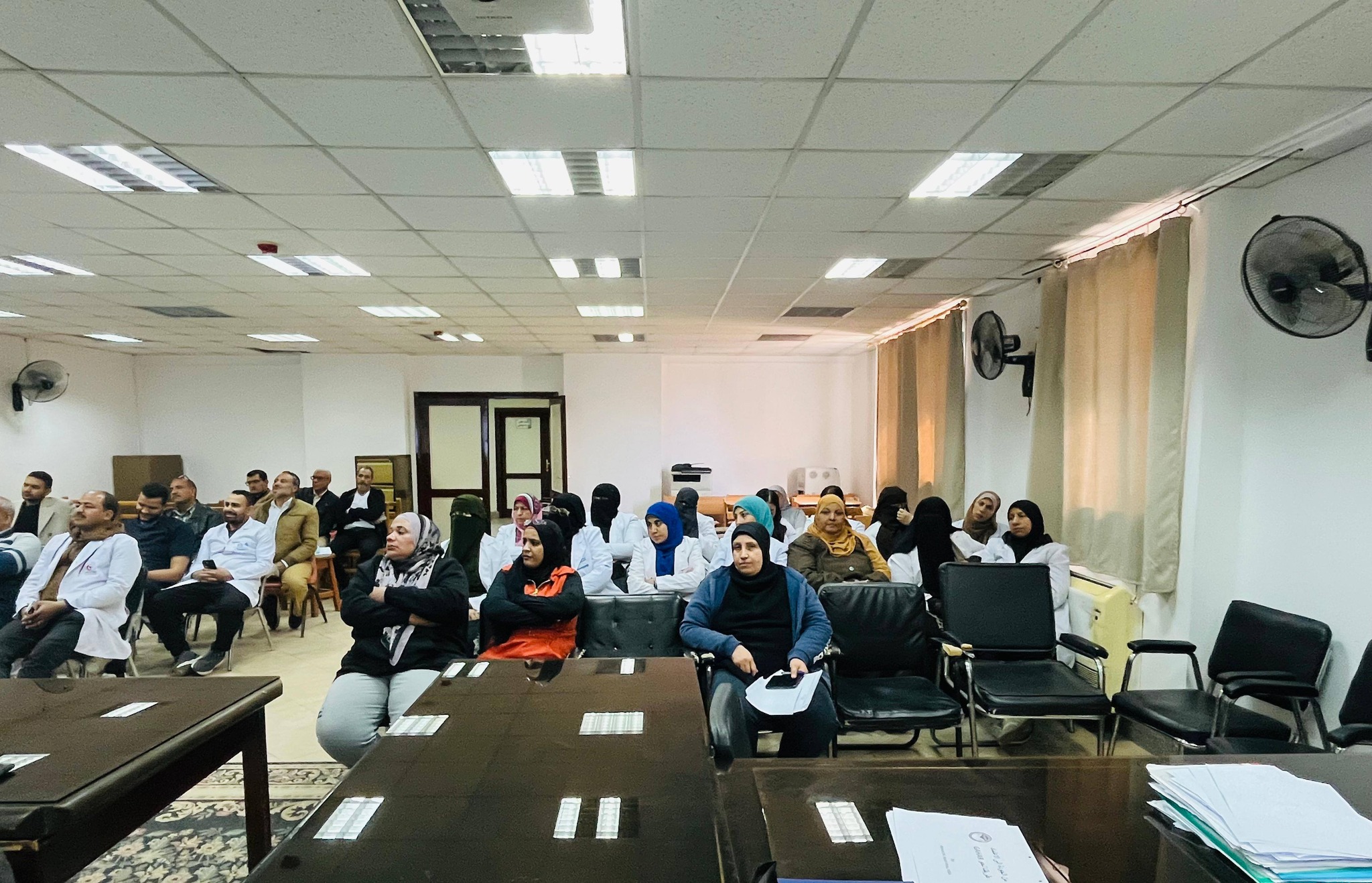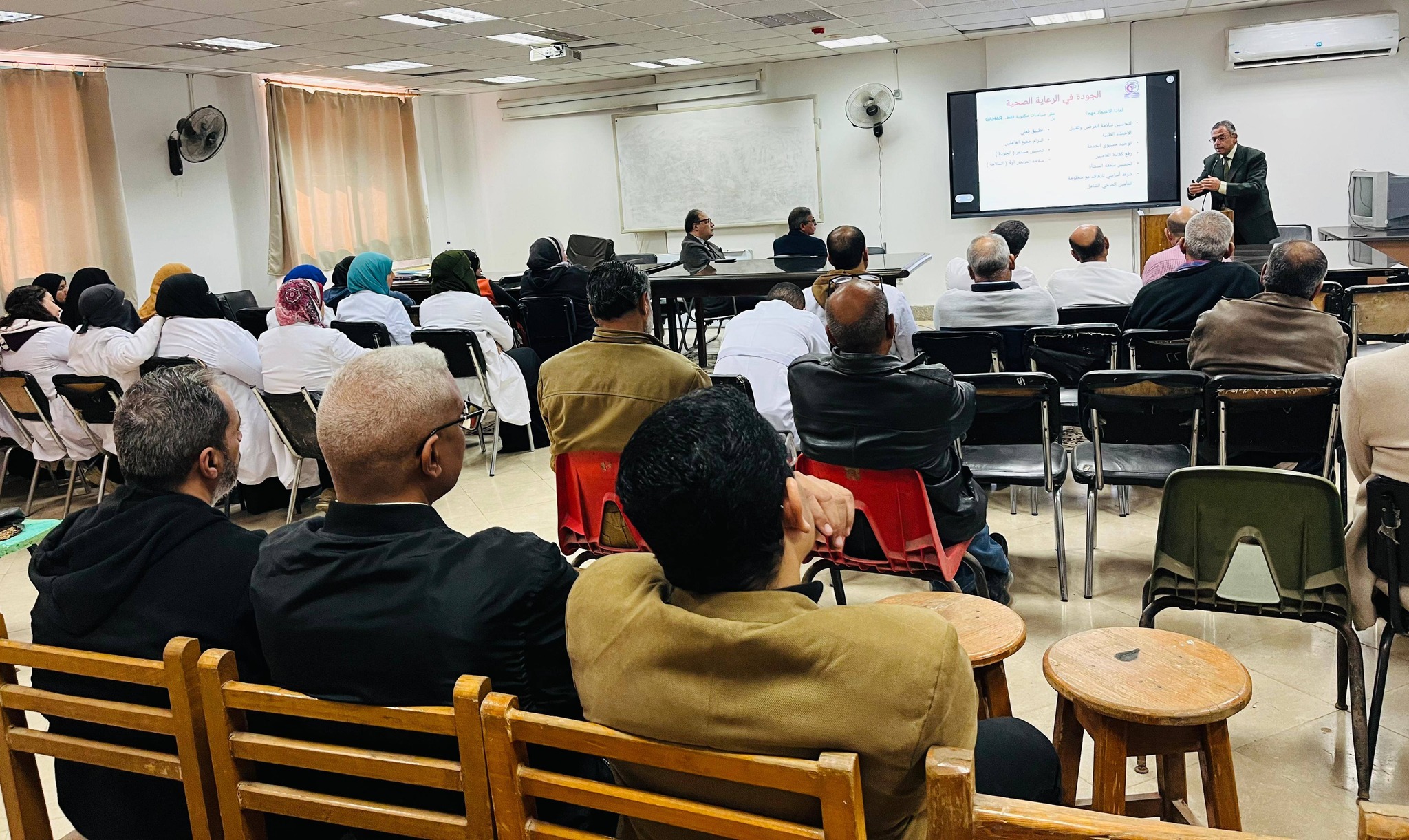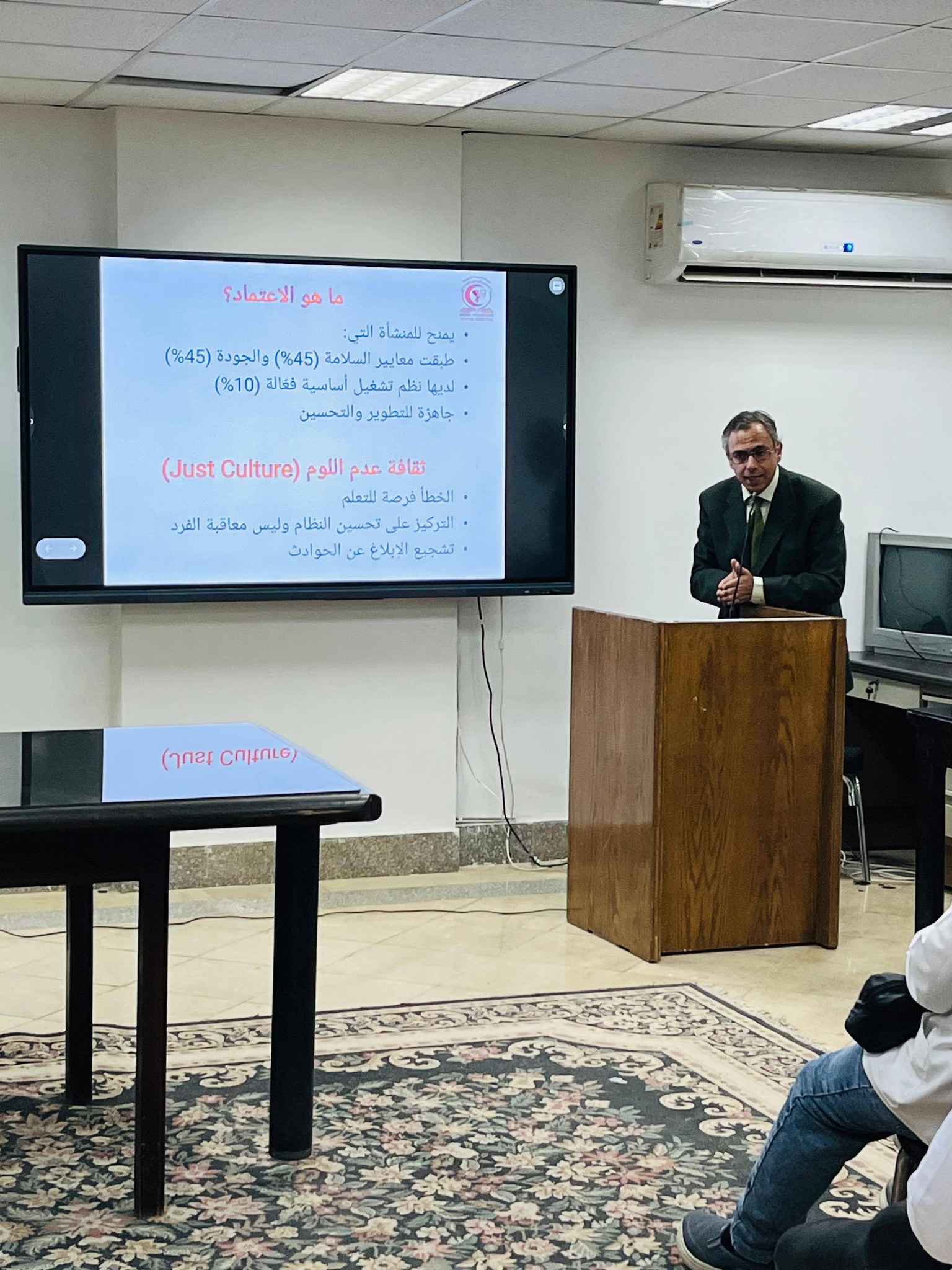 ألقاها الدكتور/ أحمد محمد عبد الباقي، حيث استهدفت الندوة استعداد المستشفى للاعتماد والعمل على تصحيح الأخطاء ودعم التقدم للاعتماد والانضمام لمنظومة التأمين الصحي الشامل.