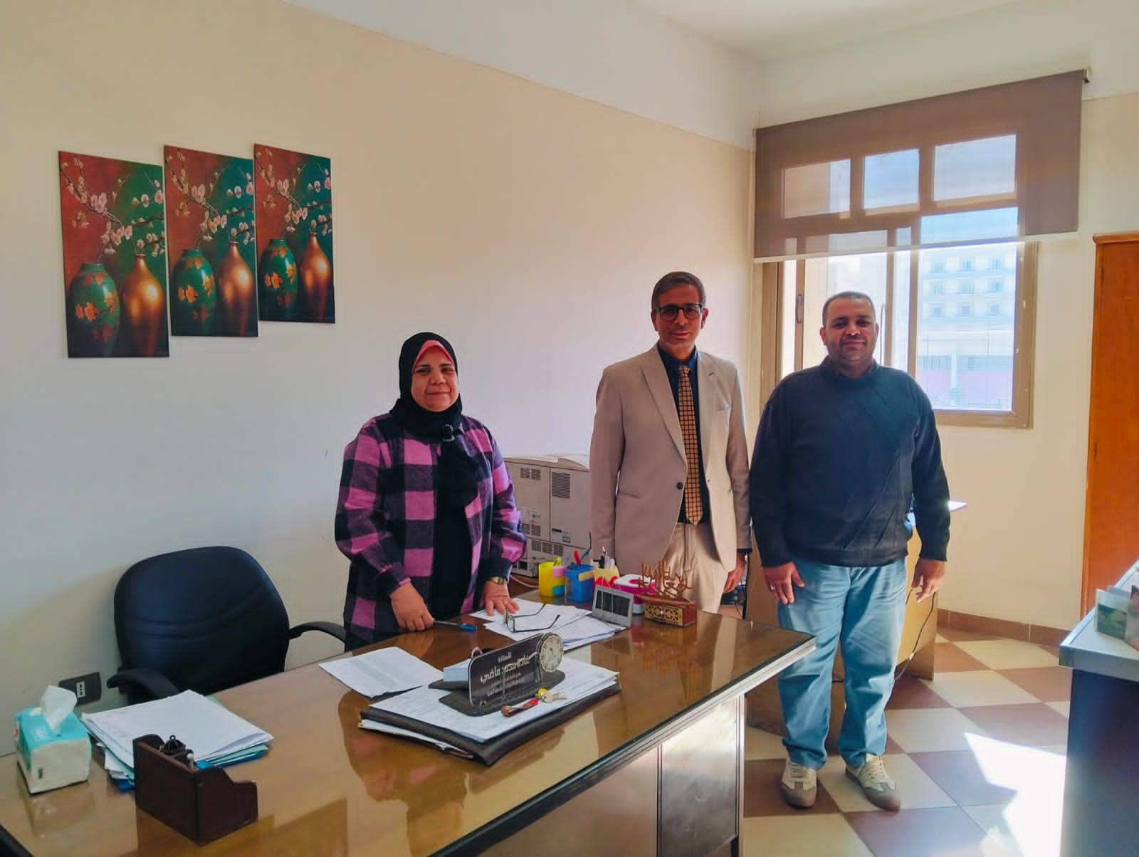 بدأت الجولة بتفقد مكاتب الجهاز الإداري، حيث التقى سيادته بعدد من العاملين بالإدارات المختلفة، مشيدًا بجهودهم المبذولة في إنجاز الأعمال اليومية، ومؤكدًا على أهمية الالتزام والانضباط بما يسهم في دعم وانتظام العملية التعليمية وتقديم خدمات متميزة للطلاب.