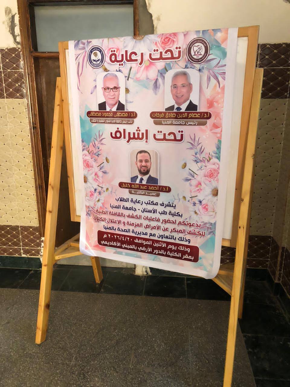 في إطار تنفيذ المبادرات الرئاسية ودعمًا للمنظومة الصحية، وتحت رعاية معالي الأستاذ الدكتور/ عصام الدين صادق فرحات، رئيس الجامعة، والأستاذ الدكتور/ مصطفى محمود، نائب رئيس الجامعة لشؤون التعليم والطلاب، والأستاذ الدكتور/ أحمد عبد الله خليل، عميد الكلية، تم تنظيم قافلة طبية لخدمة منسوبي الكلية والمستشفى، وذلك في حدث يُعد الأول من نوعه على مستوى الكلية، وبحضور السيد الأستاذ الدكتور/ أحمد محمد بكري، وكيل الكلية لشؤون تنمية البيئة وخدمة المجتمع، والدكتور/ أحمد كمال، أمين الكلية، وبالتعاون مع الإدارة الصحية بالمنيا.