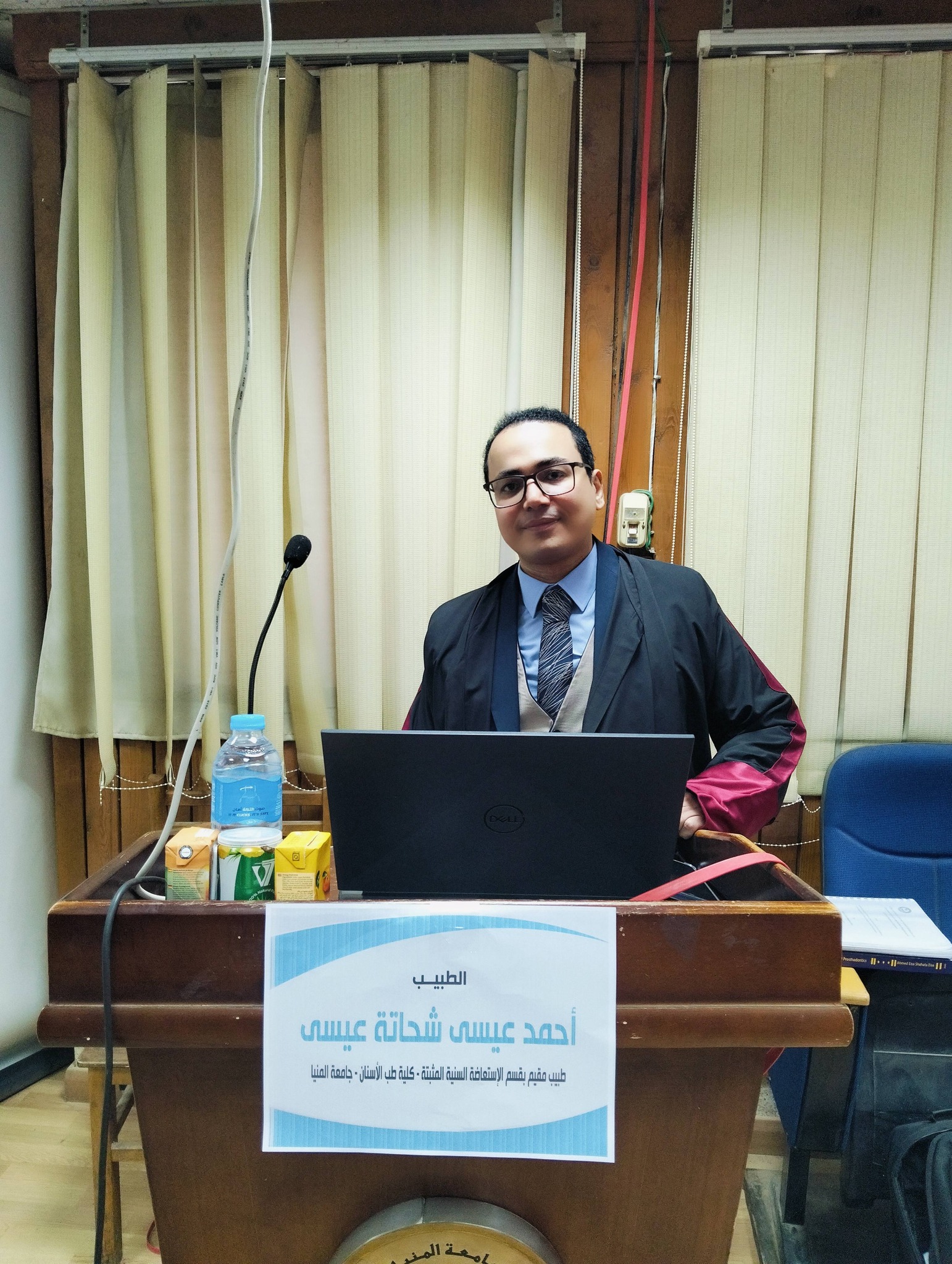لمناقشة رسالة الماجستير الخاصة به بقسم - التركيبات الثابتة